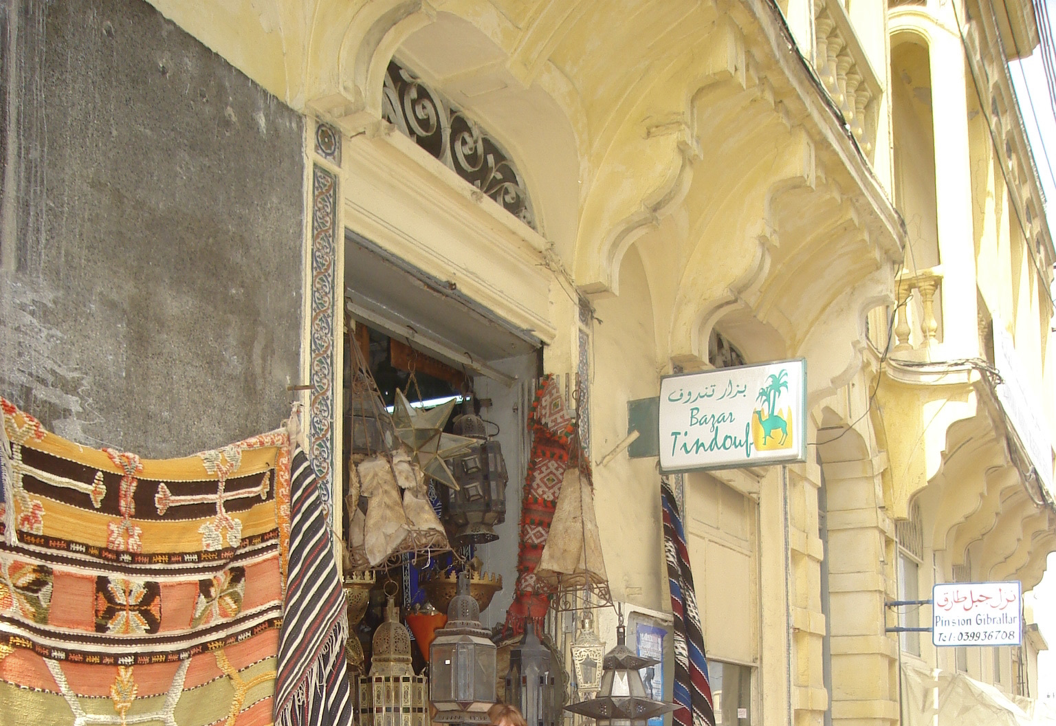 Shopping begins directly across El Minzah. The colorful goods decking Bazaar Tindouf’s door have lured us inside this Ali Baba-like cave for everything Moroccan: