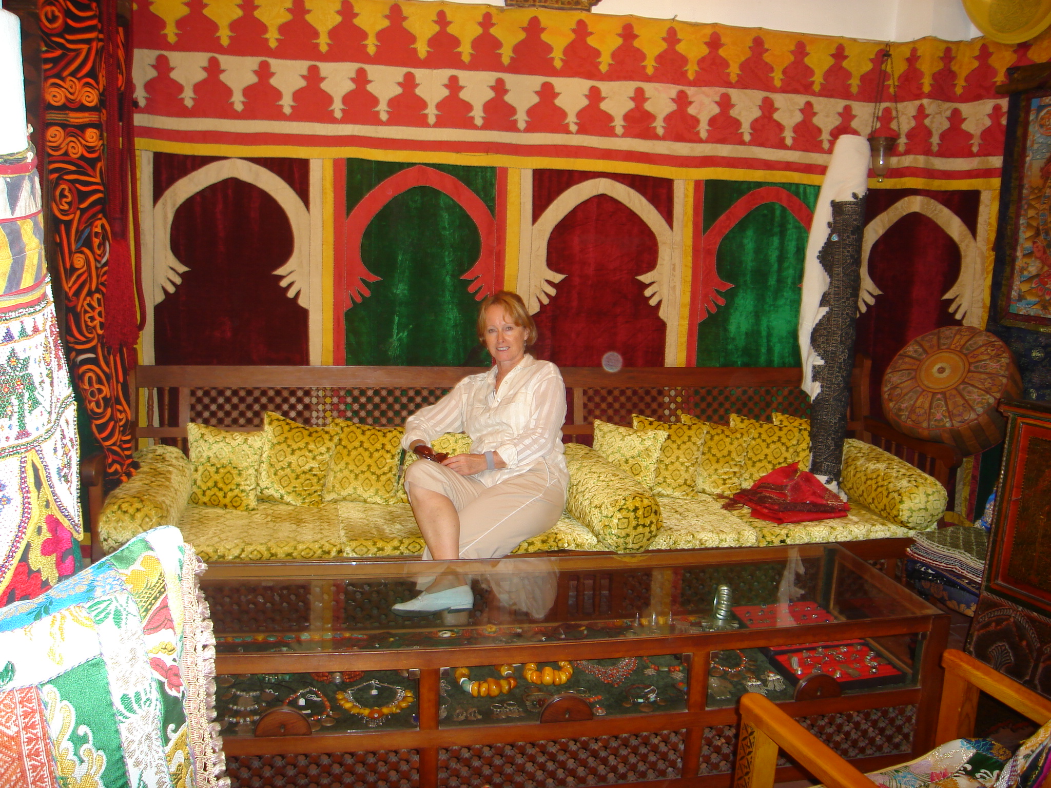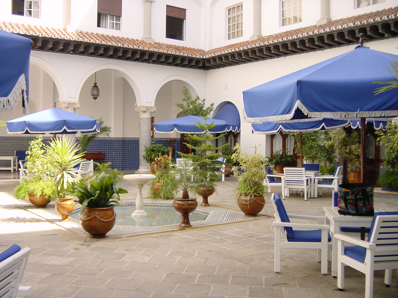 Morocco is one hour behind Spanish time, so we arrived before the shops opened. Never mind, we need a break. The hydrofoil boat ride across the Strait of Gibraltar was unsettling. Mint tea and almond cookies on the patio of El Minzah—the five-star hotel on Rue de la Liberté—is a welcome transition.