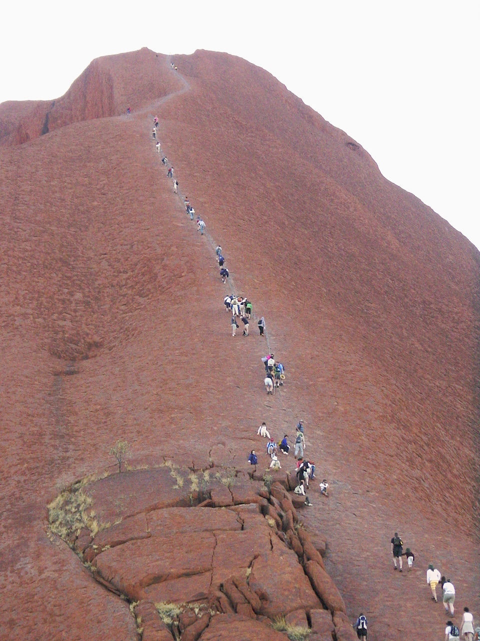 Update: Based on the spiritual significance of the site, and for safety and environmental reasons, the climb has been forbidden after a unanimous vote of the board of Uluru-Kata Tjuta National Park, in 2019.