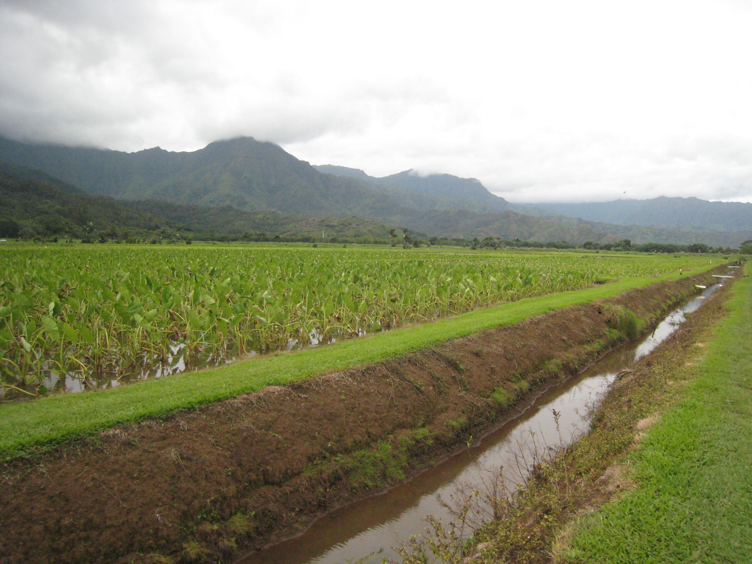 Pristine pastures, continual warm rainfalls, isolation from industrial pollution, and fertile soil are ideal conditions for growing taro. There is a reason the traditional staple food is in the Hawaiian genesis: all parts of the plant are edible—roots, leaves, and stems. And they are renewable too, all regrowing for a new crop.