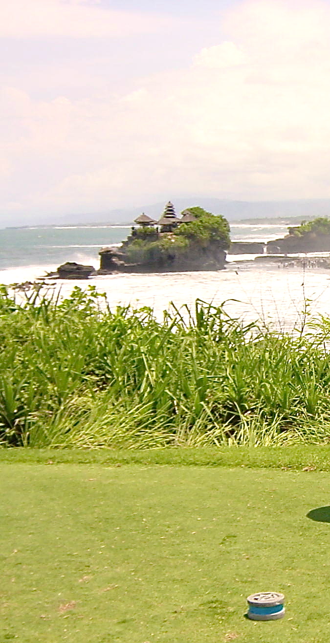 - View of Tanah Lot temple from Hole #7 at Nirwana Bali Golf Club (MCArnott)